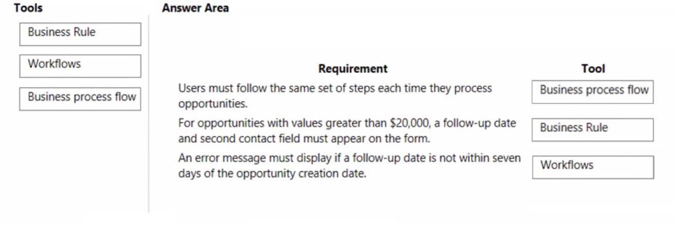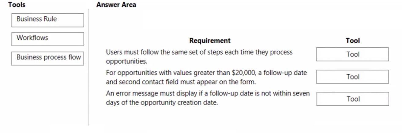 What should you recommend? To answer, drag the appropriate tools to the correct requirement. Each tool may be used once, more than once, or not at all. You may need to drag the split bar between panes or scroll to view content.