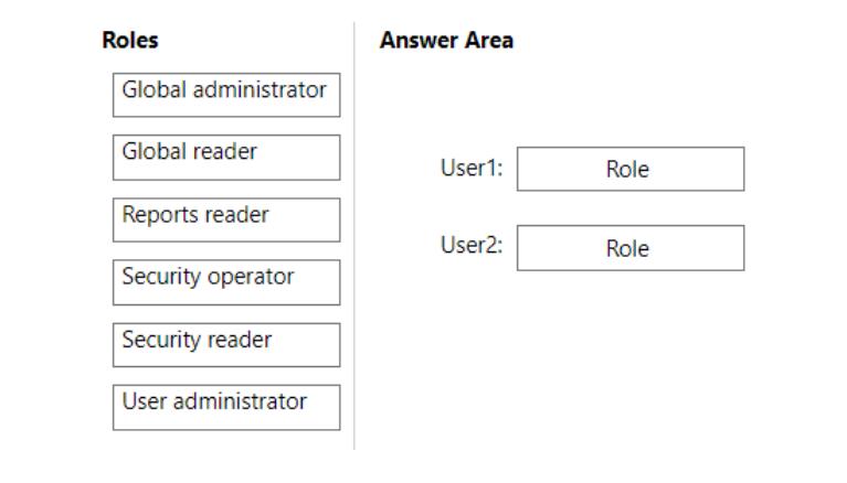 You need to ensure that User1 can create access reviews for groups, and that User2 can review the history report for all the completed access reviews. The solution must use the principle of least privilege.