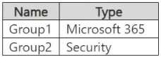You have a Microsoft 365 E5 subscription that contains the groups shown in the following table.