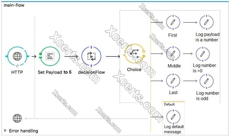 Refer to the exhibits. A Mule application is configured to use the globalErrorHandler exception handler.