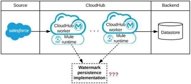A Mule application is being designed to be deployed to several CIoudHub workers. The Mule application's integration logic is to replicate changed Accounts from Satesforce to a backend system every 5 minutes.