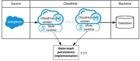 What is the most appropriate way to implement persistence for the watermark in order to support the required data replication integration logic?