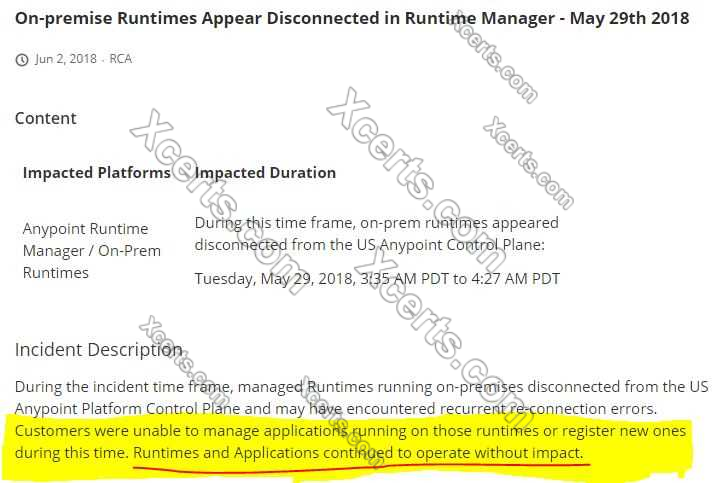 Correct Answer: API implementations can run successfully in customer-hosted Mule runtimes, even when they are unable to communicate with the control plane.