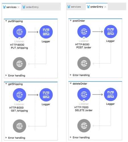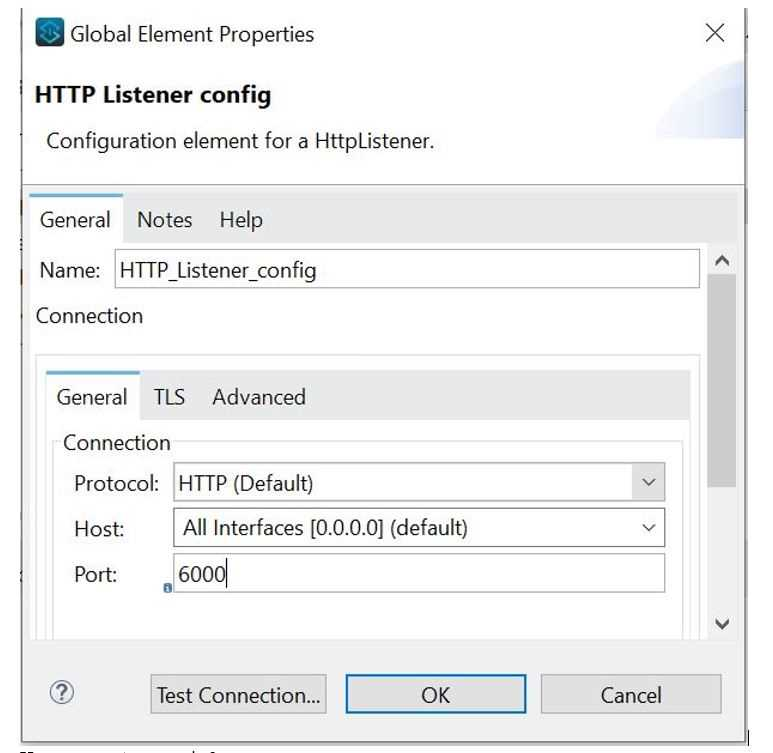 In this case three configurations will be required each for port 8000, 6000 and 7000. There would be three global elements defined for HTTP connections. Each HTTP connection will have host and port. One example shown below with host as localhost and port 6000