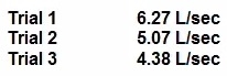 Using a peak flowmeter, a pulmonary function technologist obtains the following: