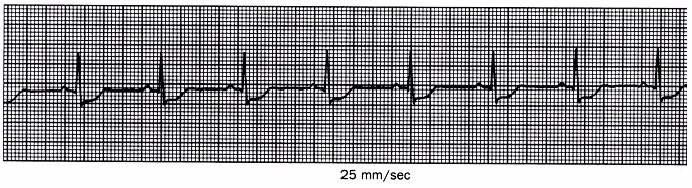 A 54-year-old male with a normal ECG at rest develops dyspnea during an exercise (stress) test, and the following ECG pattern is noted at 25 watts: