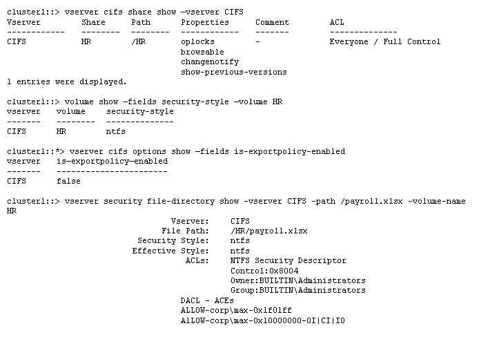The corp\eva user cannot access the payroll.xlsx file on the CIFS share that is called HR. The user is a member of the corp\Domain Users group only.