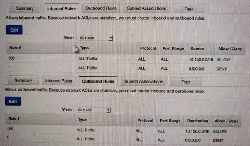 You are a Cloud Volumes Service administrator on AWS. You have a VPC with a network ACL, as shown in the exhibit. Your Cloud Volumes Service mount is 172.30.64.17:/db-volume. In this scenario, to allow the volume to be mounted, which ACL should you add to your VPC?