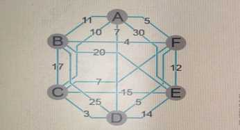 Consider the exhibit that shows a network with a full mesh fiber structure. Link weights indicate the cost. Future services can be requested between any node pair.