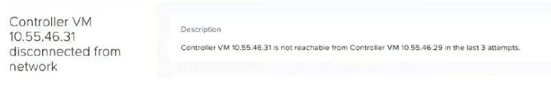 An administrator reviews the error in the exhibit then examines the state of the cluster. The administrator finds that the AHV host is up and functional, but the cluster capacity is low.
