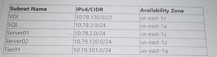 An administrator has recently deployed an NC2 on AWS cluster in the North Virginia region in availability zone us-east-1z. The clusters UUID is 0005F487-4962-91EA-4C98-C4284D123835. The cluster is consuming IPs from a 10.78.2.0/24 range.