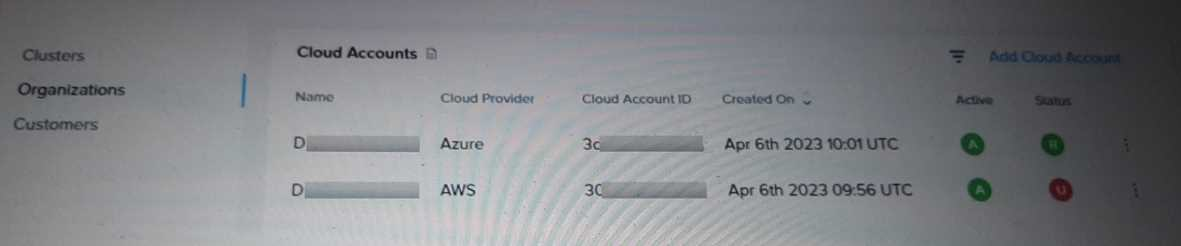 Select "Add Cloud Account" and provide the required AWS credentials and permissions. Ensure the new cloud account is active and correctly configured.