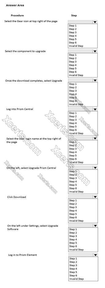 What is the proper sequence to perform a one-click upgrade to a Nutanix cluster? Item instructions: For each procedure, indicate the order in which that procedure must take place to meet the item requirements. Not all procedures are valid. Identify any invalid procedures using the drop-down option.