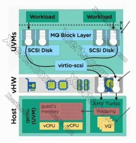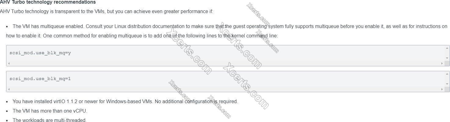 An administrator has an existing cluster and needs to improve performance using AHV Turbo. Which two items are required to achieve even greater performance? (Choose two.)