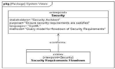 4. The Security viewpoint imports the model elements associated with flowing down the security requirements