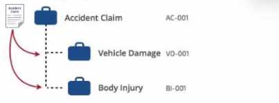 You are configuring an accident claim case with two child cases for an automobile insurance company, as shown in the following figure: