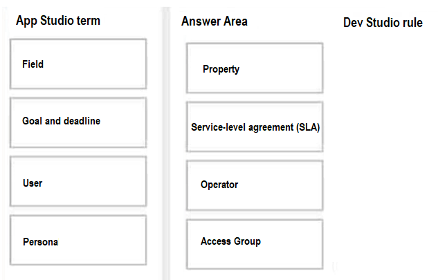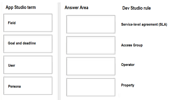 Drag the term that is used in App Studio from the left to the rule that you use in Dev Studio on the right.