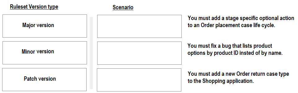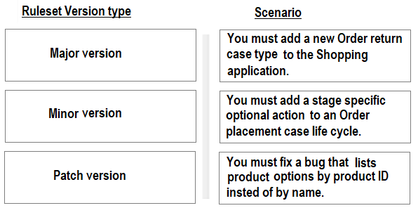 Drag the appropriate ruleset version type on the left to the corresponding scenario on the right.