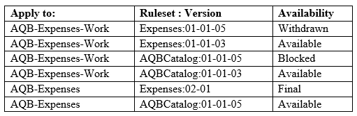 1. The operator only has access to the 01 major versions of the Expenses and AQBCatalog rulesets