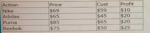 Determine the most profitable shoe: According to the calculations, Reebok has the highest profit ($25).