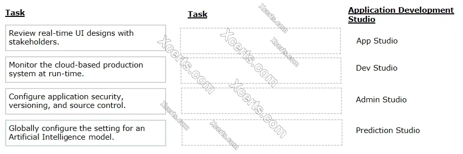 Select each task on the left and drag it to the corresponding Application Development Studio on the right, where the task can be completed.
