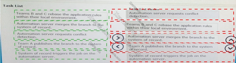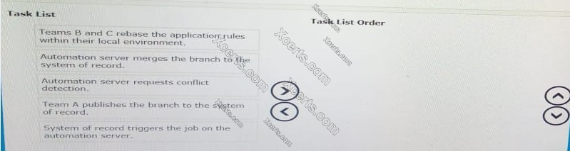 To ensure all development teams are working with the latest version of shared rule base, select and move all of the following tasks to the tasks List Order column and place them in the correct order.