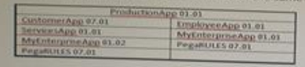 employeeapp. Each of these applications has additional built-on applications, including the duplicated MYEnterpriseApp application, which has two different versions in use. All applications are built on the same version of PegaRUUS.