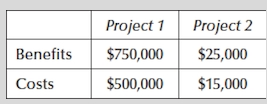 Your Portfolio Review Board is scheduled to meet in a week. Resources only are available to support one project, and detailed business cases have been prepared for two of them. Your company has a policy of being risk adverse. Based on the following table, which project would you recommend to the Board, and what else would you mention to them?
