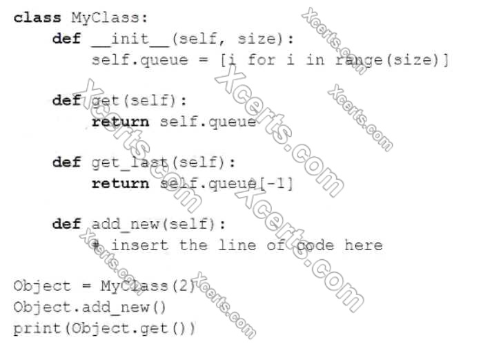 Which of the following lines of code will work flawlessly when put independently inside the add_new () method in order to make the snippet's output equal to [0, 1, 21 ? (Select two answers)