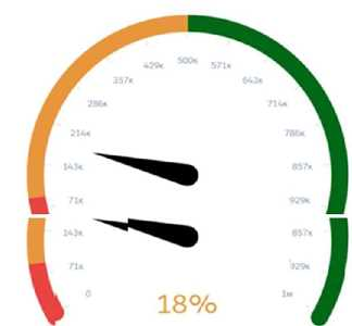 Universal Containers has a dashboard for sales managers. They need to visualize the percentage of their opportunities in the pipeline in a Gauge chart. They want to customize the chart to keep track if they are below or beyond the target.