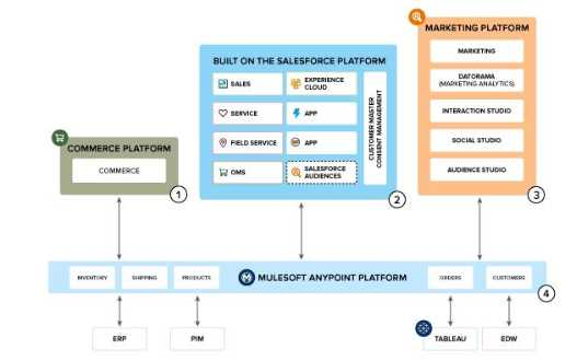 4. Salesforce products, including Sales Cloud, Service Cloud, Experience Cloud, and Order Management System (OMS) run on the same physical platform and share a common data model.