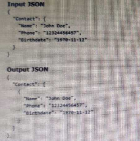 Given the input JSON shown above, what are two ways a developer could configure a DATARaptor transform to achieve the expected Output JSON? Choose 2 answers