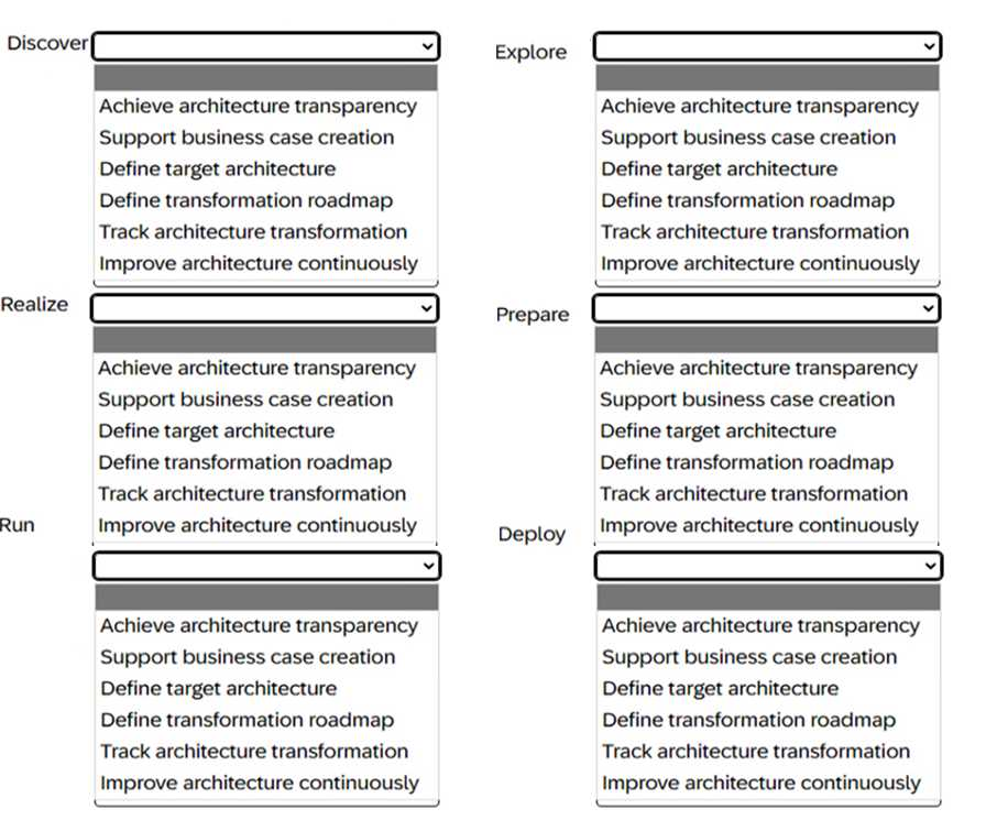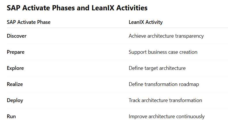 Match the SAP LeanIX activities in the dropdown lists to the SAP Activate phases.