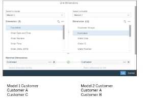 In this case, the link type that returns what data is Intersection, because it only shows the data that is common to both models, such as Customer A and Customer B. Customer C and Customer D are excluded because they do not exist in both models.