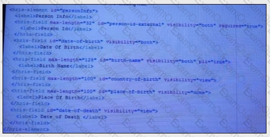 You configure the hris-element personlnfo with the following XML. What field is masked in the portlet? Please choose the correct answer