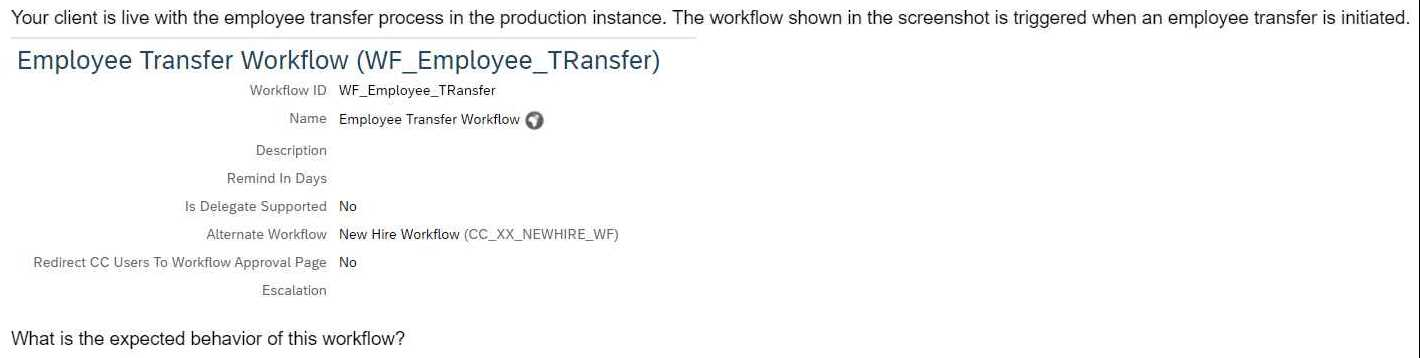 Your client is live with the employee transfer process in the production instance. The workflow shown in the screenshot is triggered when an employee transfer is initiated.