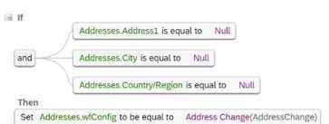 · Three event reason derivation rules (ERD1, ERD2, ERD3) · A separate catch-all event reason derivation rule (ERD-Catch) · A workflow derivation rule based on event reasons (WFD) · A rule to auto-populate the Job Title, Pay Grade, and Employee Class field values in the Job Information whenever the job code is changed (Default_JobClass) · A rule to use AddressChange workflow for any address change requests (WFD_Address) · A cross-entity rule to auto-calculate the Base_Salary amount based on changes to the FTE value for any event other than Hire or Rehire (Jobinfo_FTE_Comp) Answer the questions to ensure the event reasons and workflow rules adhere to SAP SuccessFactors recommended practices.