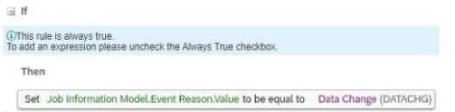 · Three event reason derivation rules (ERD1, ERD2, ERD3) · A separate catch-all event reason derivation rule (ERD-Catch) · A workflow derivation rule based on event reasons (WFD) · A rule to auto-populate the Job Title. Pay Grade, and Employee Class field values in the Job Information whenever the job code is changed (Defauit_JobClass) · A rule to use AddressChange workflow for any address change requests (WFD_Address) · A cross-entity rule to auto-calculate the Base_Salary amount based on ) changes to the FTE value for any event other than Hire or Rehire (Joblnfo_FTE_Comp)
