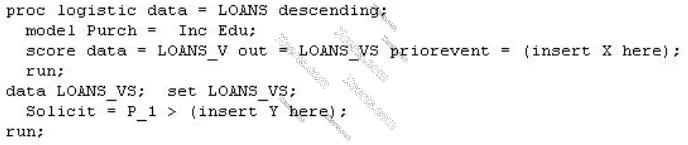 A logistic regression model was fit on a data set where 40% of the outcomes were events (TARGET=1) and 60% were non-events (TARGET=0). The analyst knows that the population where the model will be deployed has 5% events and 95% non-events. The analyst also knows that the company's profit margin for correctly targeted events is nine times higher than the company's loss for incorrectly targeted non-event.