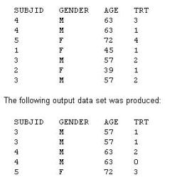 4. proc sort data=one out=two;