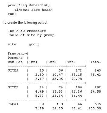 4. TABLES site*group /nocol norow; TABLES site*group /nocol norow;