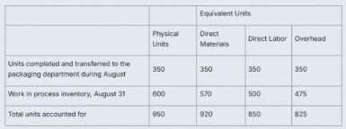 These tables pertain to the blending department of Martinez Corporation, a paint manufacturer, for the month of August.