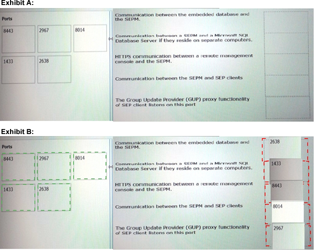Match the following list of ports used by Symantec Endpoint Protection (SCP) to the defining characteristics by clicking and dragging the port on the left to the corresponding description on the right.