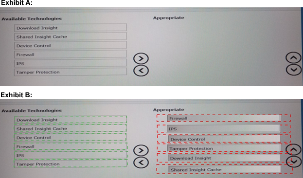 Drag and drop the technologies to the right side of the screen in the sequence necessary to block or detect the malicious file.