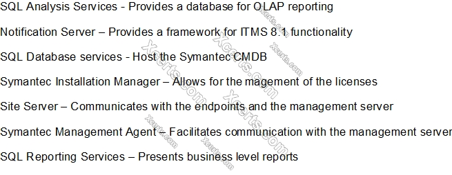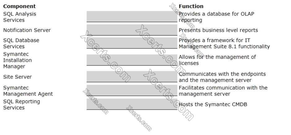 Which function does each IT Management Suite 8.1 component perform? Match the components on the left to the correct function on the right by clicking on the component and dragging it to the appropriate function.