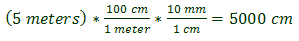 How many millimeters are there in 5 meters?