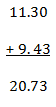 Add: 9.43 + 11.3 =