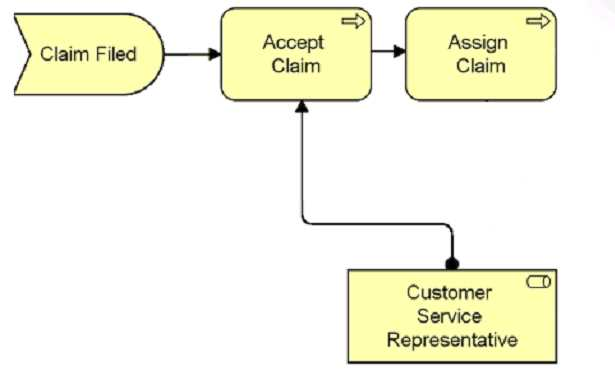 1. The event Claim Filed triggers the Accept Claim process which is serviced by the Customer Service Representative role before the Assign Claim process.