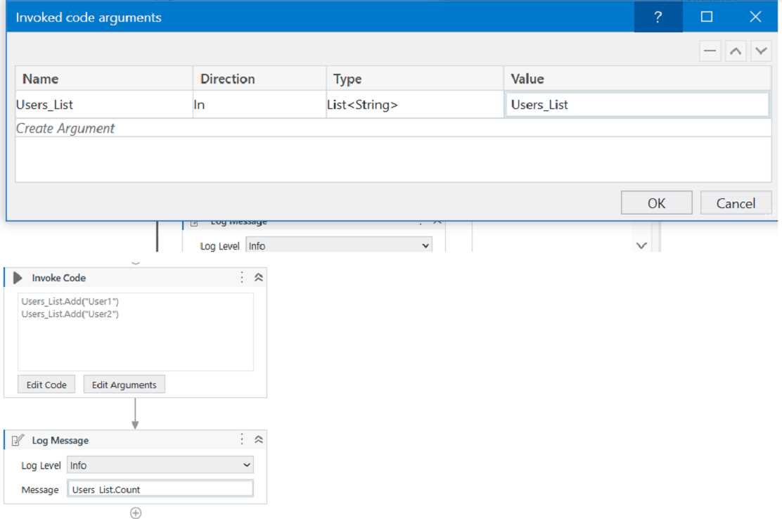 What is printed in the log message after the following Invoke Code is executed?