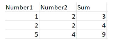 Add a new column after Number2 and name it Number. This column will store the third number for the sum operation.